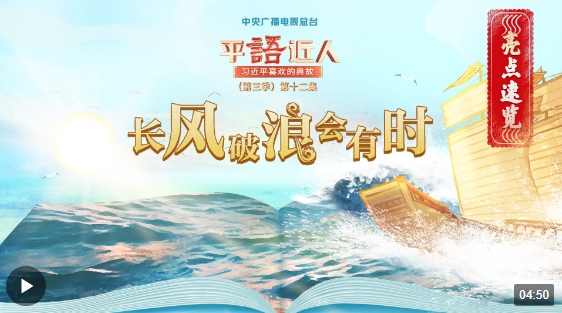 2月29日,《平“語(yǔ)”近人——習(xí)近平喜歡的典故》(第三季)播出第十二集《長(zhǎng)風(fēng)破浪會(huì)有時(shí)》。
