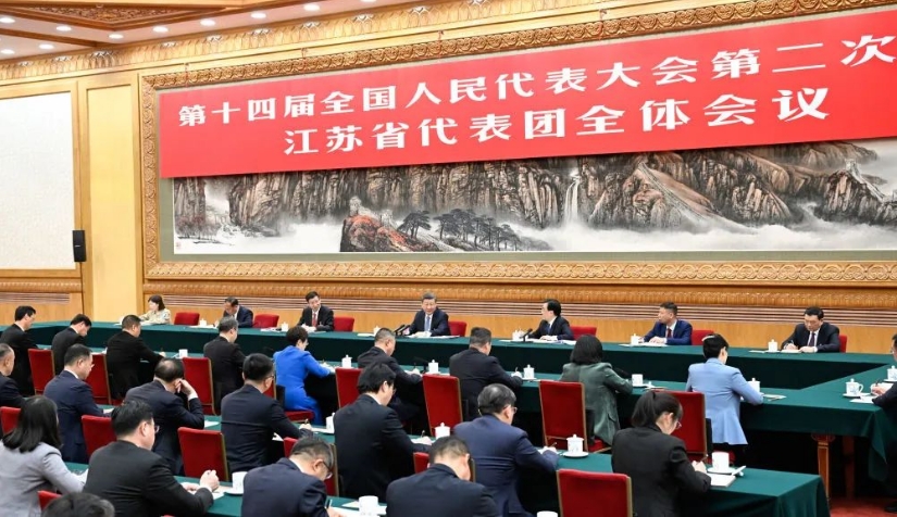 2024年3月5日,習(xí)近平參加他所在的十四屆全國(guó)人大二次會(huì)議江蘇代表團(tuán)審議。新華社記者 謝環(huán)馳 攝