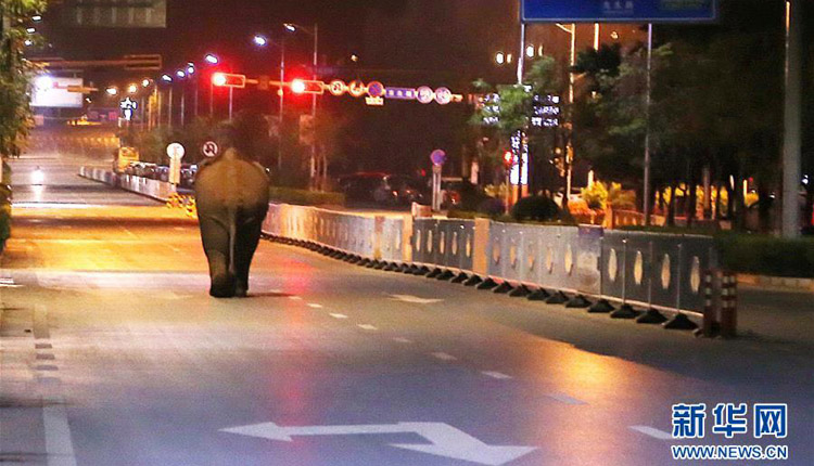 云南普洱鬧市區(qū)上演“象出沒”